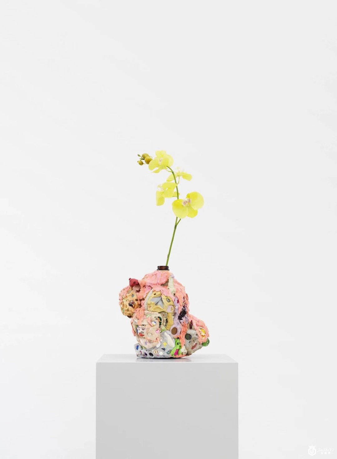 花瓶整体运用了与¨Memory Jug¨ 相同的塑造工艺: 于空啤酒瓶上层层叠加亮色混凝土,并且在过程中,嵌入一系列来自日常生活的古怪物件作为装饰品。Dermody 将花瓶当做剪贴簿,收集自己的梦与焦虑。