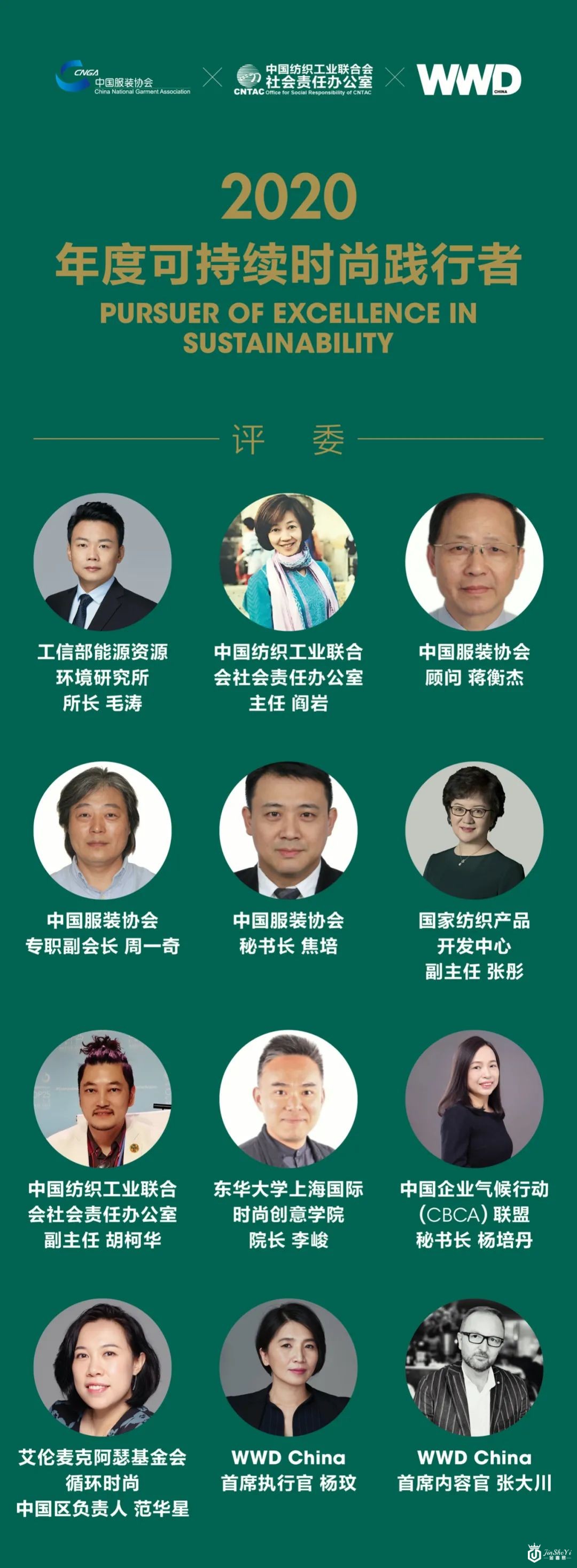 越来越多企业和品牌加入到可持续时尚的绿色发展之路,国内外层出不穷的可持续时尚品牌,国内时尚尤其是服装行业需要明确的导向,为给市场还原明朗的可持续信号,WWD 联合中国服装协会、中国纺织工业联合会社会责任办公室,邀请业界权威,组成了「2020 可持续时尚践行者」评审委员会。