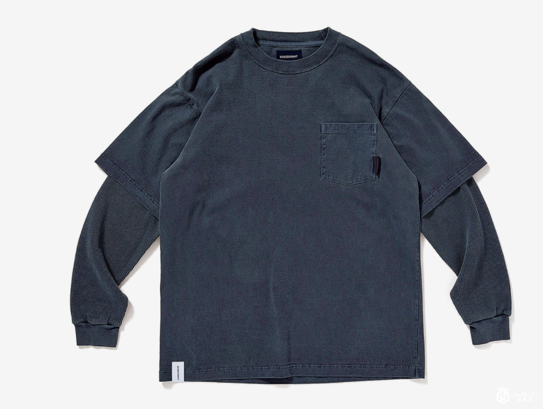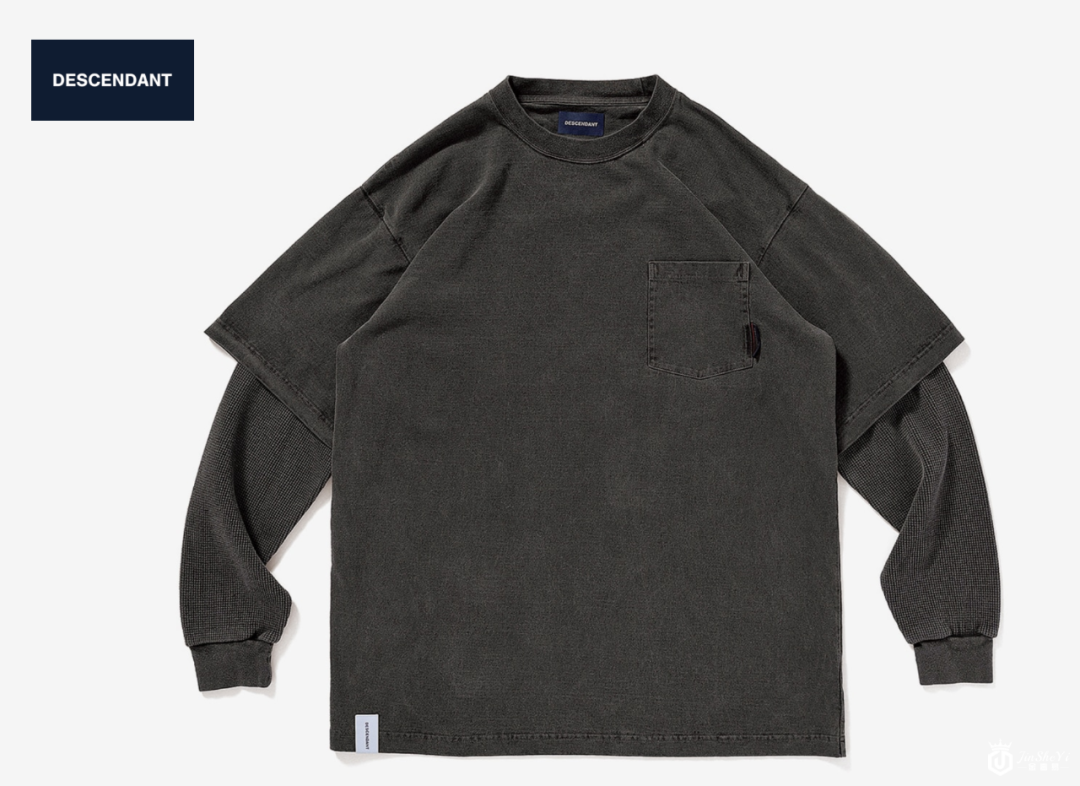 DESCENDANT作为西山彻创立的品牌,保留了他在WTAPS惯用的军事风格之外,走一种更为轻松舒适的路线。DESCENDANT经常推出假两件设计,可以说是品牌定番了,版型就是最经典且实穿的长短袖拼接假两件,无论是单穿还是打底都具备不错的效果。