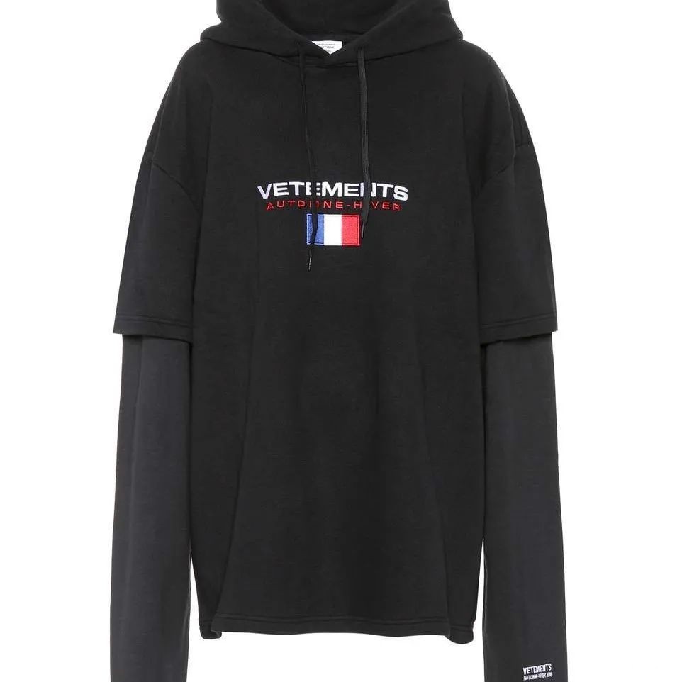 设计师品牌VETEMENTS玩起假两件风格也是一把好手,利用同色系,同元素的搭配方式,在同一件衣服上就能营造出搭配的层次感。