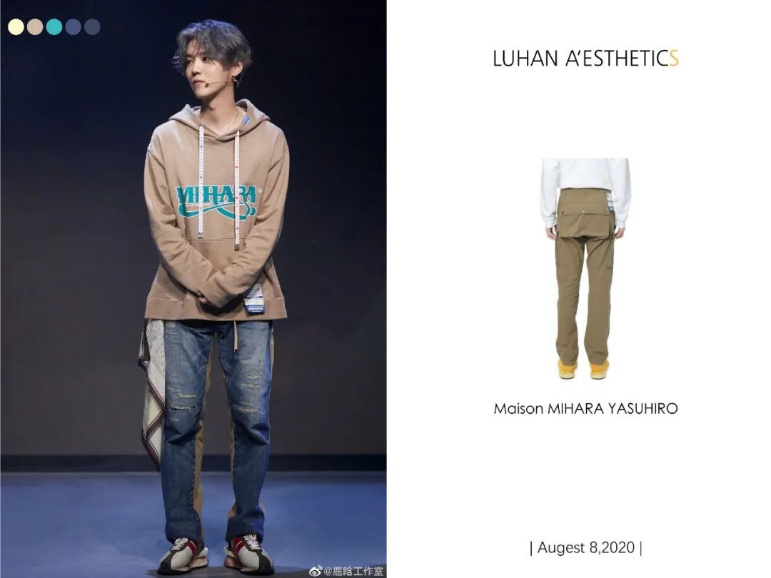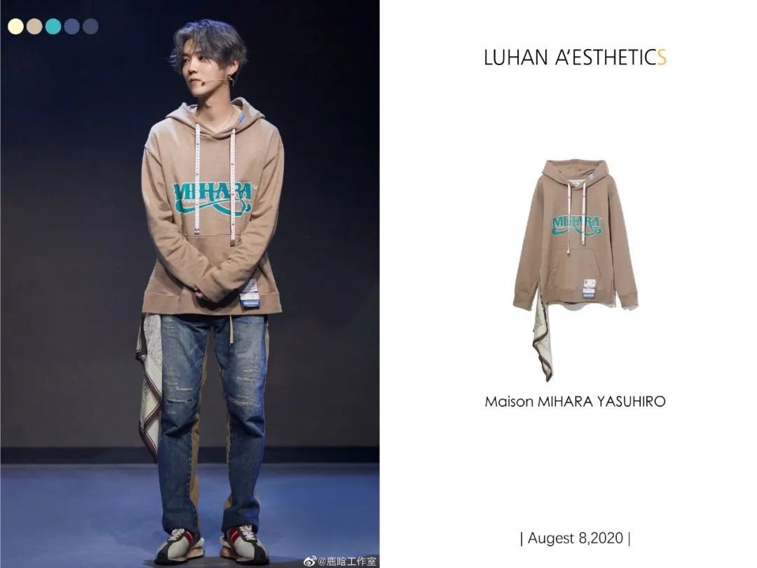 好兄弟鹿晗也同时上身了一件MMY的卫衣,相比吴亦凡那件,这件假两件更加低调又有细节,利用后摆的丝巾营造出独特的休闲和层次感,同时搭配同品牌双面拼接裤款,从头到脚都是假两件,造型整体复古有趣。