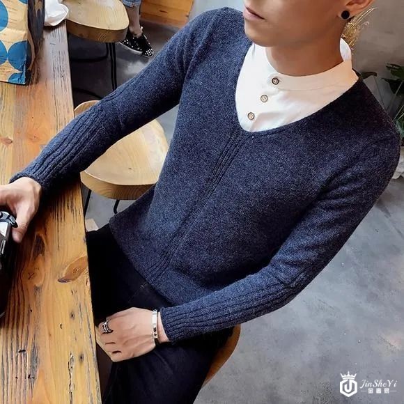 你穿过这样的假两件吗?假衬衫领口搭配毛线衫