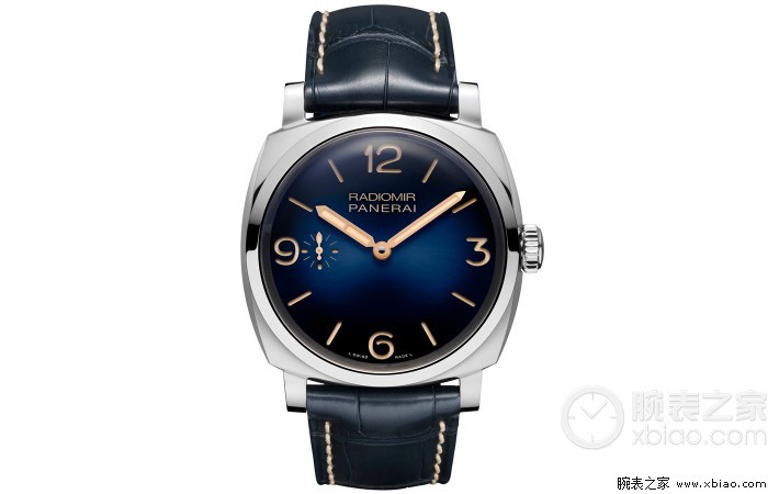 穿透深海的光线通过折射创造出美丽的色彩奇观,让人类深感惊叹和着迷。事实上,没有任何其他颜色能像蓝色那样,凭借与天空和大海的自然联系,以及变化莫测的色调,唤起人们对无限的遐想。Radiomir 1940 3日动力储存腕表的新表盘似乎希望通过精致的satiné soleil工艺,捕捉无限的色调及强度。表盘应用各种蓝色色调,外部更深更暗,使时标更加鲜明易于辨识,越向中央越亮,呈现渐变效果。