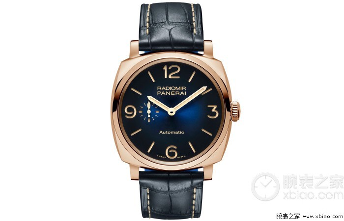 Radiomir 1940 3日动力储存腕表精钢款防水深度100米,红金款防水深度50米。所有腕表均配备蓝色鳄鱼皮表带,与表盘颜色完美搭配,对比鲜明的米色缝线也让人联想到时标涂覆的物料荧光色彩。每款腕表均以优雅的蓝漆樱桃木盒展示,并附赠一条蓝色橡胶备用表带,唯独42毫米款式附赠一条蓝色织物备用表带。