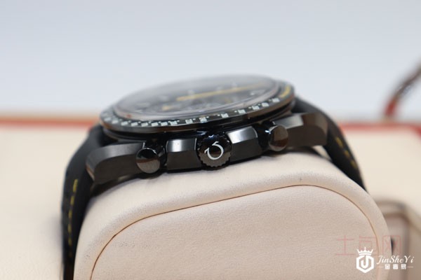 上图为欧米茄超霸系列月之暗面阿波罗8号手表侧面展示