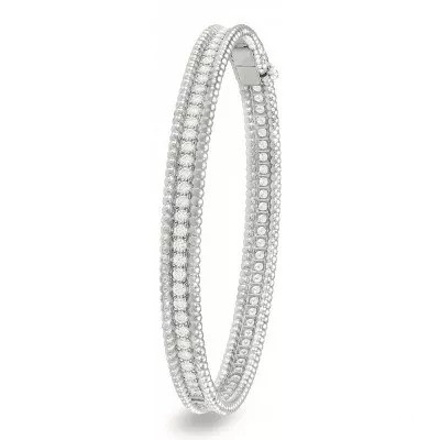 永恒式镶钻手镯用两列金珠环绕一列明亮切割钻石,提供黄金、白金和玫瑰金三种版本。每一颗金珠都经过细致的抛光打磨,珠形的镜面亦反射出钻石的明亮。手镯滑扣同样设计为隐秘式的圆珠造型,让你能够从任意角度佩戴。