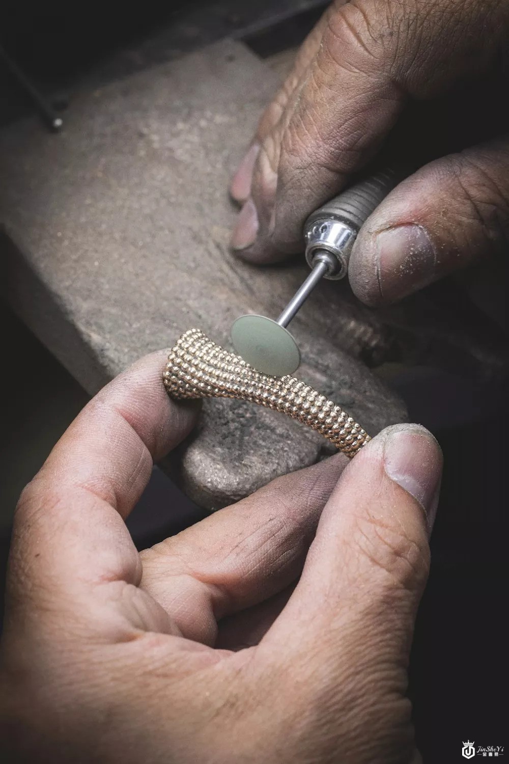 Van Cleef & Arpels 刚刚推出了「Perlée」系列新一季作品——一共6枚金质手镯,三枚镶嵌弧面切割彩色宝石,三枚为永恒式镶钻设计。灵感依然源自1920年代「滚珠工艺」,设计师在镯壁铺饰金珠,用金质圆润的流光衬托宝石的颜色。