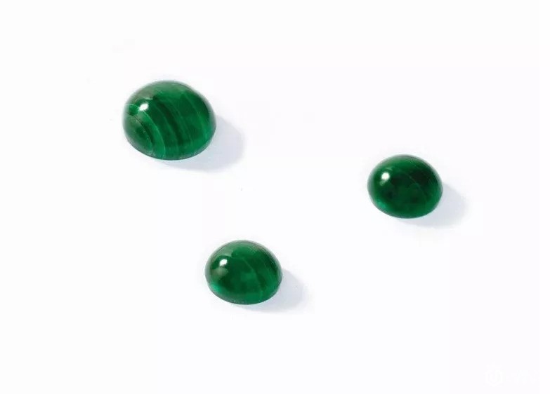 镶嵌弧面切割孔雀石,圆形切割钻石。