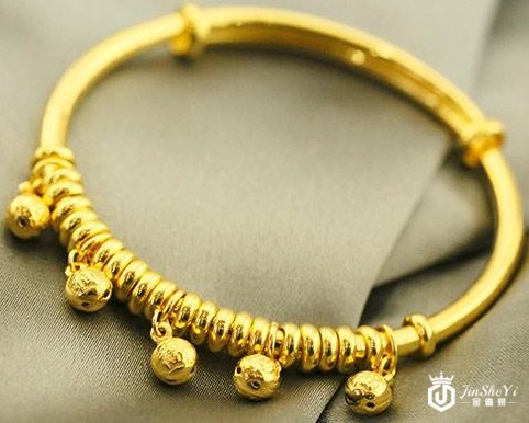 铃铛是孩子气的饰品,戴铃铛的女孩通常都有青春的活力。把铃铛应用到金饰品上,可以让黄金首饰的贵气中,多几分少女的情怀。这个民族风格的铃铛的手镯,只有铃铛是镂空样式,里面没有其他的东西,所以不会叮铃的响。