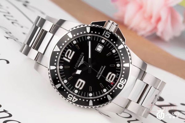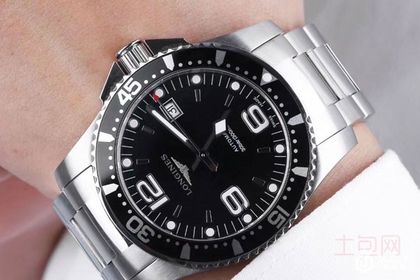 图为浪琴动运系列精钢自动械机男表