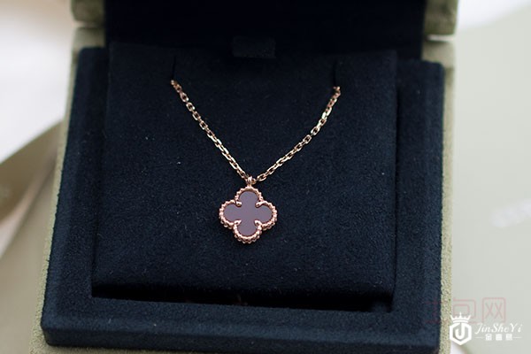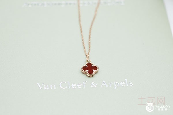 上图为VCA/梵克雅宝经典时尚热卖款四叶草玫瑰金色金镶红玉髓女士项链