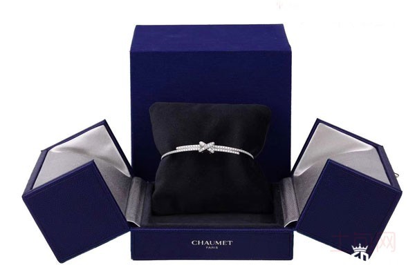 图为尚美巴黎18K白金镶钻欢·缘手链包装展示