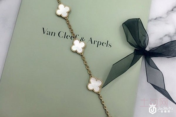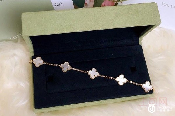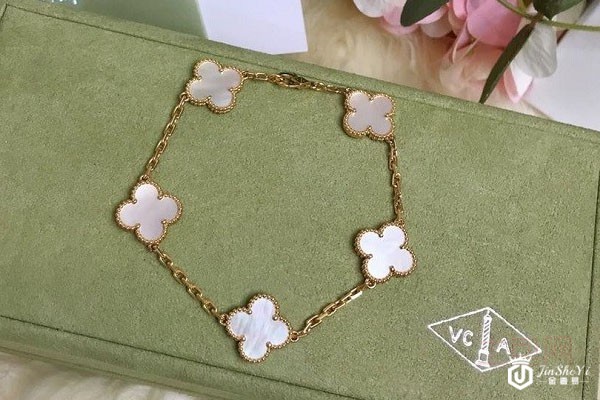 上图为梵克雅宝(VCA)18K黄金白贝母四叶草五花女士手链