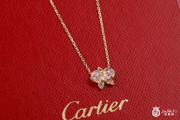 图为卡地亚CARESSE系列18K玫瑰金镶钻项链