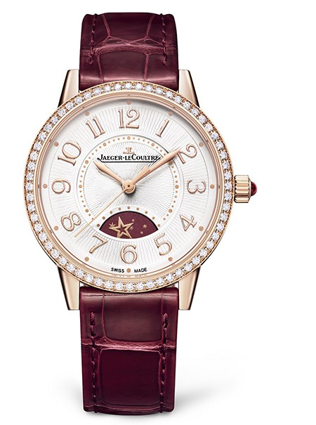 积家 Rendez-Vous Night & Day 约会系列日夜显示腕表-致敬光影限量款采用前所未有的鲜明设计,在6时位置的昼/夜显示盘上和闪亮的鳄鱼皮表带中均注入深红色调。顾名思义,这枚“致敬光影限量款”是为致敬电影业而打造的腕表,曾在上海国际电影节于主题展览上现身。此系列原有的月亮元素换上一颗五角星标,并与深红色的表带相互映衬。表圈镶嵌明亮式切割钻石,突显出扭索饰纹装饰的精致考究的表盘。玫瑰金星标在深红色背景上优美转动,斗转星移,日夜交替。