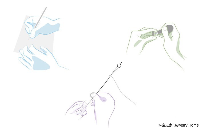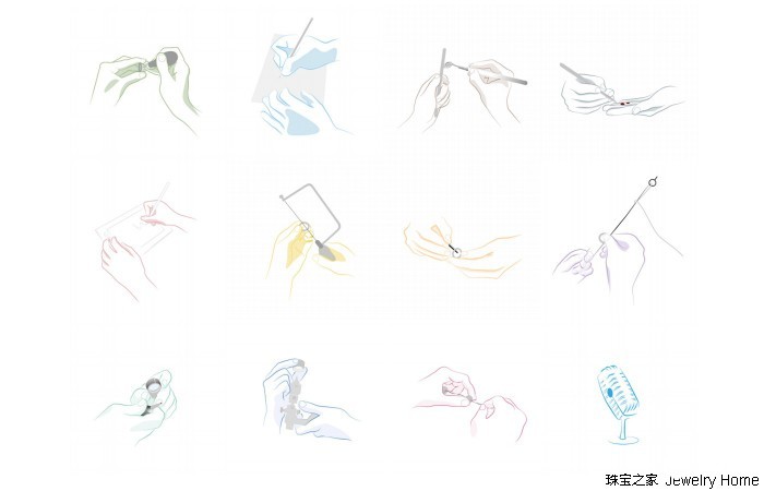 「我们察觉到珠宝工艺相关的传播讯息,皆以影像作为媒介。我们选择摒弃高清摄影图像,转而以手绘素描勾勒工匠的双手,彰显手工艺神秘而富诗意的精髓。」