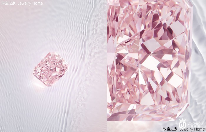 在五光十色的彩色宝石中,粉色钻石是色彩最为稀有的品种之一。而在粉色钻石之中,又属浓彩粉色(fancy intense)最为罕见。因此,当萧邦联合总裁兼艺术总监卡罗琳·舍费尔邂逅这枚重达10.88克拉的浓彩粉色钻石时,她的激动心情已不言而喻。Rose ofCaroline钻石采用雷迪恩矩形切割,拥有70个刻面(多于常规钻石),流光溢彩、晶莹剔透,尽展柔美色泽。其净度经美国宝石学院(GIA,Gemological Institute of America)钻石分级标准评定为VVS1级。
