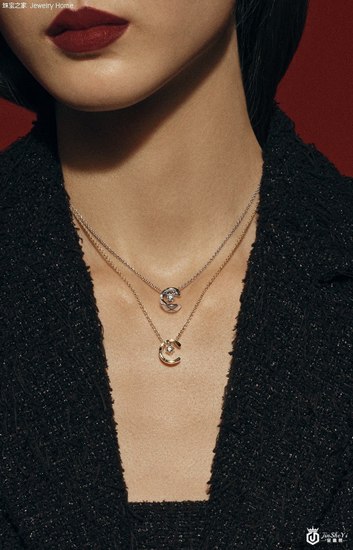 COCOCRUSH项链灵感源自CHANEL品牌首字母和标志的菱格纹图案,以BEIGE米色K金、黄K金或白K金精心打造,皆镶嵌一颗钻石。