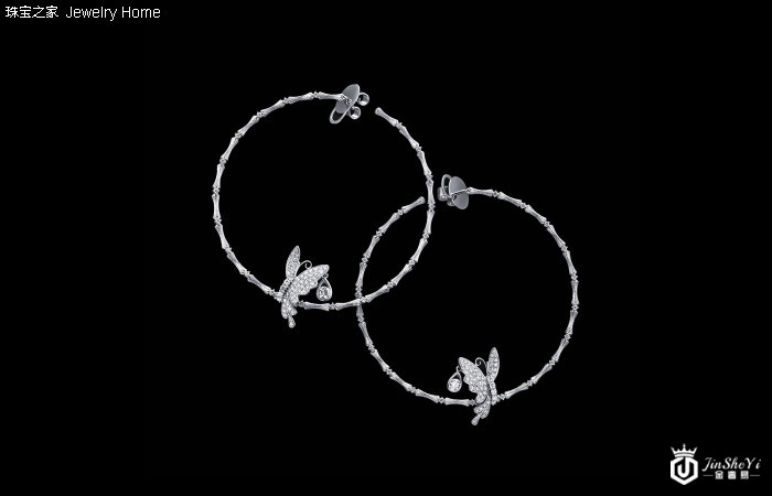 万宝宝:在设计蝴蝶和竹子的时候,我想象的是它们之间的爱情故事。蝴蝶虽然色彩斑斓,但是一种短命的生物;而竹子给人一种四季常青、屹立不倒的形象。试想蝴蝶和竹子的爱情,想必不会长久,所以我把蝴蝶和竹子设计在一起,从而封存起这段爱情瞬间。除此之外,用珠宝表达“瞬间”的设计理念也受到摄影的影响,摄影按下快门的动作只有不到一秒钟,拍出来的照片就是对这一秒瞬间的封存。