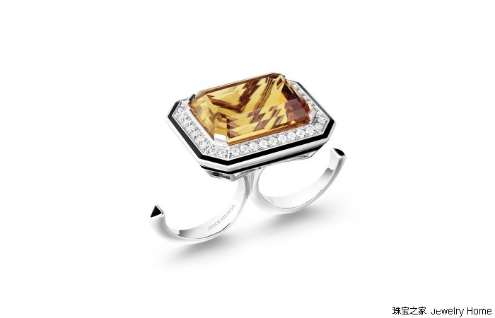 Boucheron 宝诗龙 Paris, vu du 26系列高级珠宝 Duo Taille Emeraude祖母绿切割指间戒当然,我们不仅用到了巴洛克风格,还有其他风格,比如这两枚戒指就更偏向Art Deco艺术风格。通常大家习惯佩戴单枚戒指,我们创作了两枚戒指,这样你就可以同时佩戴它们,看上去会更有力量。我们创作这些珠宝就是为了让女性找到自己的风格。Jewelry Home:所以您的大多数珠宝都是可以拆卸的吗?Claire Choisne:是这样的,因为我们想要女性能够自由选择风格,我觉得像“你应该戴这条项链”“你应该戴那件戒指”之类的想法太老套了。女性可以佩戴这些项链去红毯或者什么重要场合,也可以在日常生活中或者Party上佩戴。