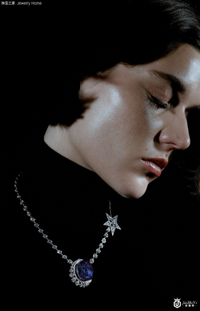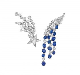 ComèteSaphir系列由项链、手镯、两对耳环和一枚戒指组成,星罗棋布的圆形切割钻石和纯净剔透的蓝宝石如瀑布般喷涌直泻,将银河般绮丽的光采映照在肌肤之上。