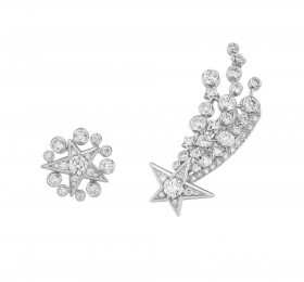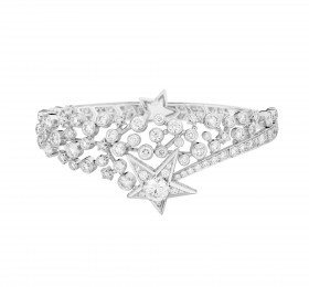 钻石的完美浑圆以更为恒久隽永的方式演绎这些象征符号,光线的折射更烘托出宝石夺目的光彩。1932臻品珠宝系列描绘了一幅崭新的天穹画卷。彗星——曾经化身为一款开放式项链环绕于脖颈,最终洒落在胸前,自此便成为香奈儿珠宝作品的标志。循环的螺旋形与喷涌的流星在空中无限旋转,追逐着行星。月亮,在“Bijoux de Diamants”钻石珠宝系列中仅出现在一件作品中,但在1932系列中成为一个独立的标志。曾经的新月逐渐升起化作一轮满月,笼罩在闪烁的光晕中。当然,还有太阳的金辉必不可少,如此夺目鲜明,炽热闪耀。