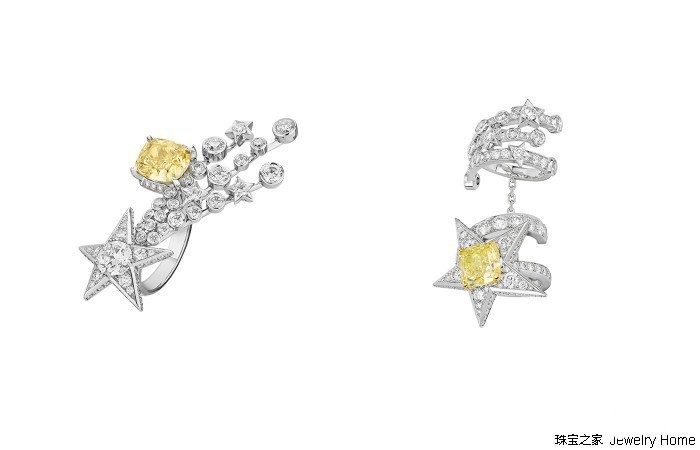 ComèteHarmonie项链、手镯、耳环和戒指以流星的设计再现了“BijouxdeDiamants”钻石珠宝系列中Harmonie手镯的极致简约与纯粹,也是系列中唯一一组以香奈儿女士钟爱的黑白色调呈现的作品。