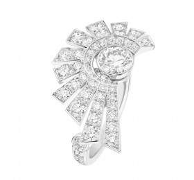 SoleilMademoiselle项链与耳环以太阳的动感为源,线条轮廓沿着前胸与耳际的曲线徐徐展开。俯看,SoleilMademoiselle戒指是光芒四射的艳阳,侧看,又仿佛瑰丽的曦阳冉冉向天际升腾。
