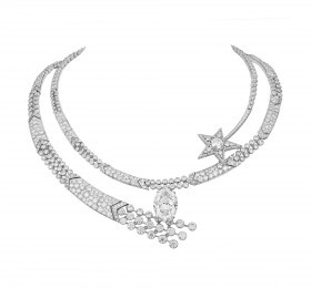 PluiedeComètes项链上流星疾驰的轨迹与当年的Comète项链遥相响应。灿若繁星的圆形切割钻石幻化成一场场流星雨,环绕着手腕、手或手指,抑或顺着耳际的曲线划出一道美妙的弧线。