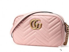 chevron皮革,背面配以GG标志,古铜色金属配件,内部开口口袋,各种身高背都好看,皮面缝线的设计制造出一种鼓鼓的很可爱的感觉,水波纹链条设计太有心,自带光环,金属扣+珍珠尽显浪漫气息美的无可挑剔!GG系列识别度甚高,在大街上看到绝对能一眼认出,包内侧的cucci商标,上面的缝线一定是整齐的。背后是一串数字是这个包的编码。包内黑色商标仔细看下,二维码是清晰的,不像假货二维码是糊的。耐刮耐造耐磨,价格友好又百搭 ,确实很经典,相机包是要比marmont厚一点,也更能装。相机包的带子不能调节还过长,小伙伴可以去某宝买一个调节链条的锁扣,很实用哦,marmont比相机包贵了几千块。