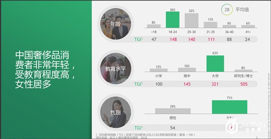 波士顿咨询公司(下称BCG)和腾讯公司(Tencent)于9月26日联合发布的《中国奢侈品市场消费者数字行为报告》(下称报告)指出,想获得中国奢侈品消费者这一明显年轻的群体的青睐,奢侈品企业必须走好线上的路。