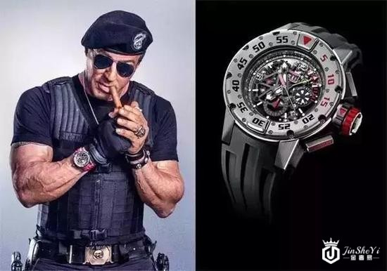 说到好莱坞的硬汉形象就不能不说史泰龙了,演绎过无数经典的硬汉角色,在他最近的作品《敢死队3》中,他佩戴的是 Richard Mille(理查德米尔)的不凡力作 RM032 Ti 自动上链计时潜水表,是近年来 Richard Mille 最受瞩目的腕表之一,表壳采用钛合金打造,所以也被称为 “钛合金引擎”。配备计时码表和年历显示功能,同时能适应300米的深浅工作,据说售价达到 60万人民币 左右。
