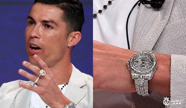 ▲这款C罗拥有的FRANCK MULLER Cintrée陀飞轮并非一般款式,而是品牌特别为他打造的超级限量款,手表镶满了矩形钻石,要价据称将近150万美金。