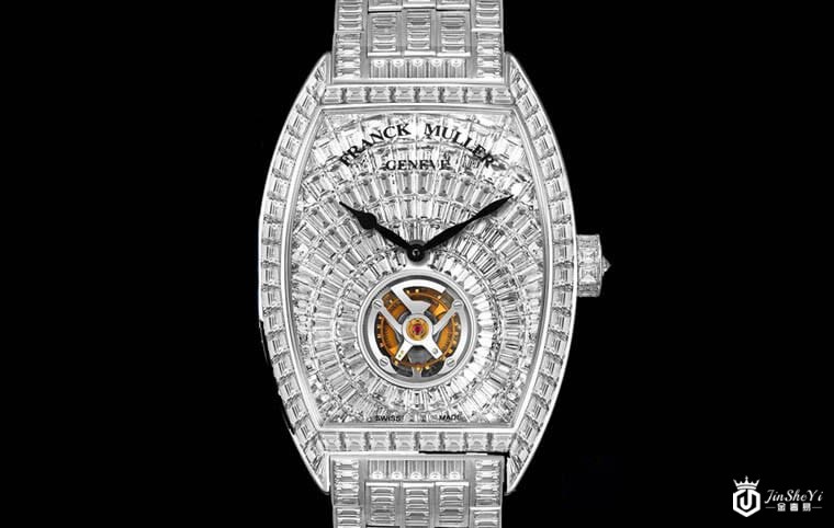 远看C罗这次戴的表应该是白金之类的K金表,,重点是从手表闪现的光芒可以看出,这又是另一只镶满钻石的手表,再仔细一点分析对照可以看出原来C罗戴的是FRANCK MULLER的Cintrée陀飞轮,而且这还不是一般的Cintrée陀飞轮,它是FRANCK MULLER特别帮C罗制作的别注款,世上就只有这一只,从图中可以看出手表从表壳、链带再带面盘都镶满了矩形切割钻石,钻石满到都快盖过陀飞轮的光彩了。