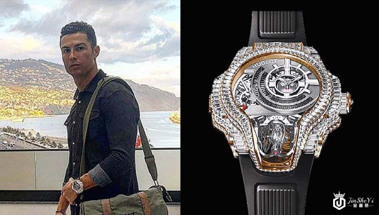 ▲拥有丰富手表收藏的Cristiano Ronaldo对钻表可说喜爱有加,例如他曾佩戴宇舶的MP-09双轴陀飞轮皇金满钻手表。