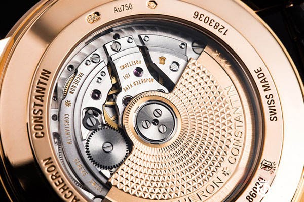 上图为江诗丹顿粉红金飞返功能手表表底实拍