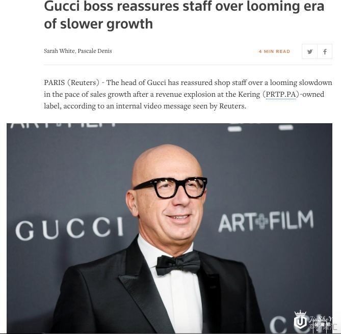 比扎里还在视频中表示,“我们需要认识到,在某一个时间点我们的增长将放缓,我们不能保持每月50%~60%的增长速度,这是不可能的。” 这段近四分钟长的视频是在9月25日~10月3日古驰在巴黎的时装秀之后发布给工作人员的。