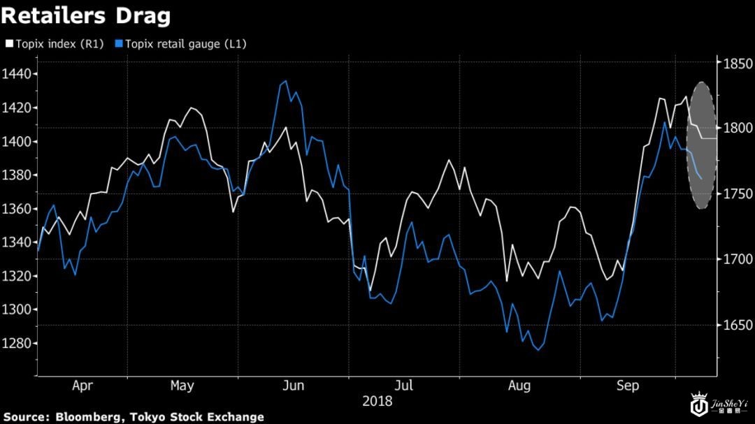 日本零售行业股价下跌
