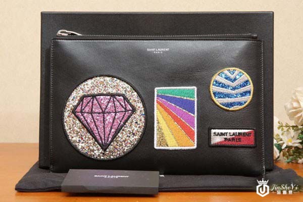 上图为YSL圣罗兰徽章款手拿包尺寸25*1*17cm