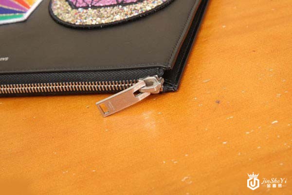 上图为YSL圣罗兰徽章款手拿包拉链轻微氧化