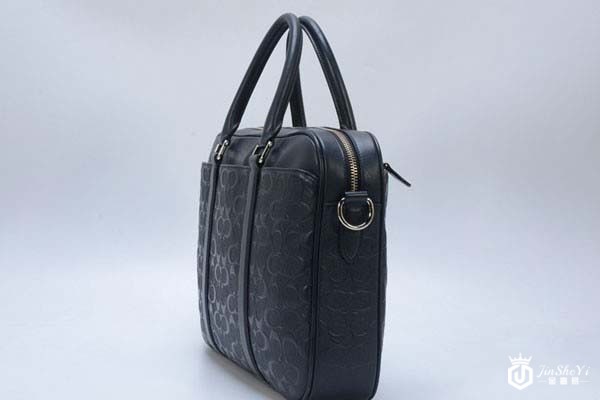 上图为二手蔻驰老花压纹黑色全皮公文包的外观展示