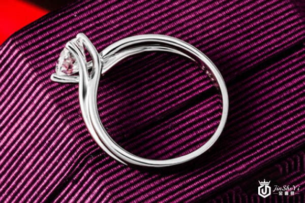图为六福珠宝白金钻石戒指侧面