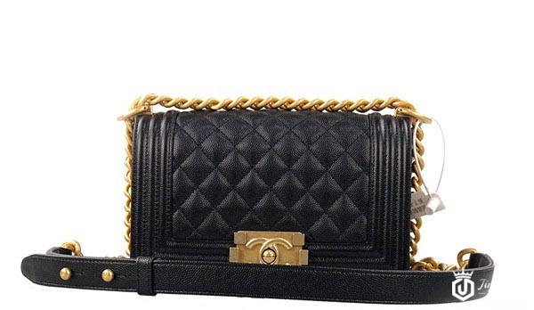 香奈儿黑色格菱纹leboy单肩包