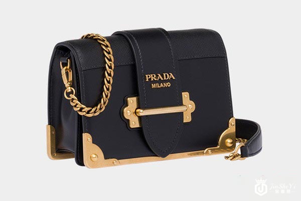 上图为普拉达多色皮革金属插扣logo单肩包