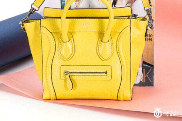 上图为赛琳明黄色牛皮笑脸手提包实拍
