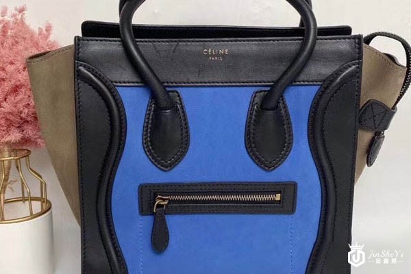上图为赛琳蓝色黑拼色小牛皮笑脸包实拍