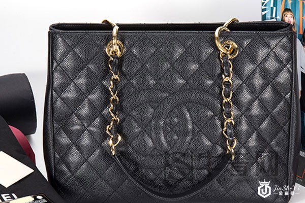 上图为香奈儿GST大号黑色荔枝牛皮单肩包实拍