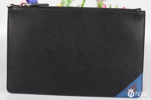普拉达手拿蓝角标男包拉链图