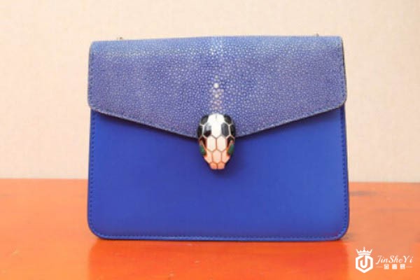 图为宝格丽宝蓝色蛇头包