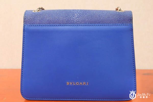图为宝格丽宝蓝色蛇头包背面